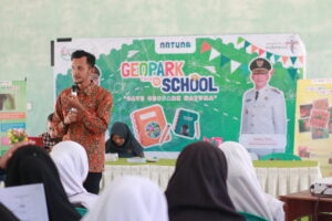 Sekretaris Geoaprk Natuna Bapak Tukino memberikan materi di MAN 1 Natuna (Foto: Dispar)