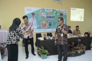 Pemberian souvenir kepada peserta di SMK Negeri 2 Bunguran Timur. (Foto : Dispar)